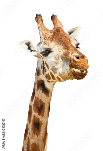 © Valerii Kaliuzhnyi, Naklejka premium Giraffe head sly put out its tongue look