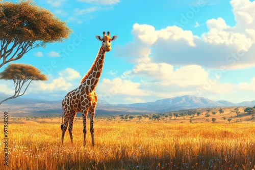 © Syahrul Zidane A, Obraz premium Giraffe in the savannah