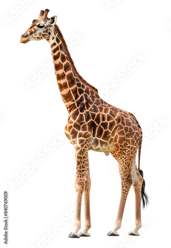 © rvlsoft, Obraz premium Giraffe isolated on transparent background, wild life concept, realistic illustration, generative ai