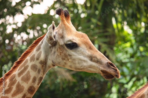 © GraphicsRF, Naklejka premium giraffe neck and head in a forest background