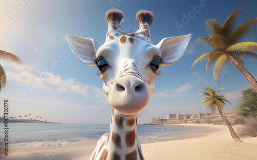 © Georgios, Obraz premium giraffe on the beach
