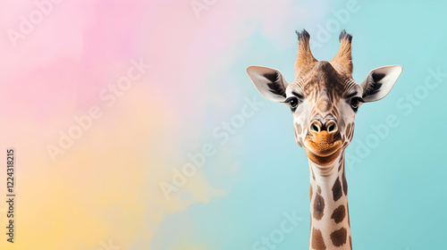 Fototapeta premium Giraffe portrait animal kingdom wildlife photography vibrant background...