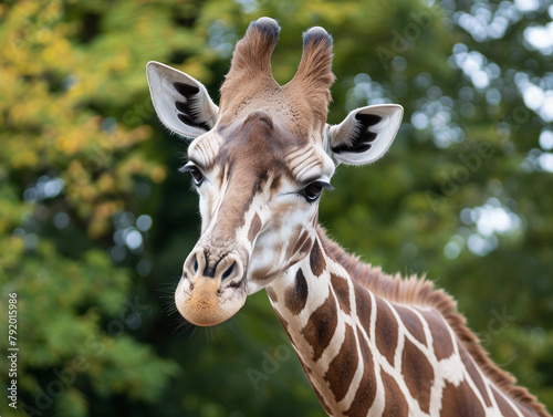 © pavlofox, Fototapeta premium Giraffe Portrait with Blue Sky