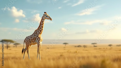 © Muhammad, Obraz premium giraffe standing in savannah with acacia trees