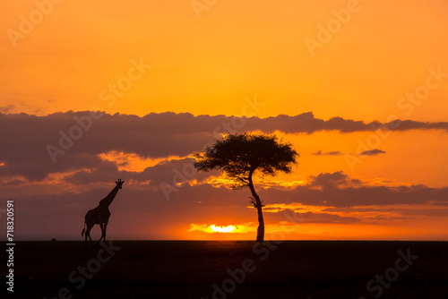 © George Erwin Turner, Fototapeta premium Giraffe Sunset Walk