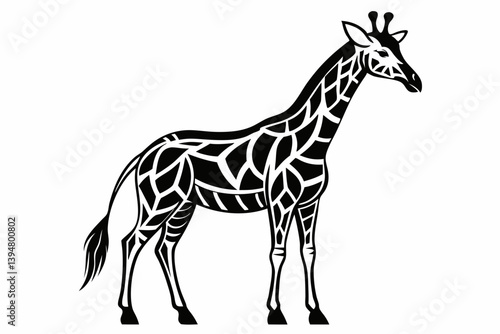 © MSTSALMA, Naklejka premium Giraffe vector line art black design and white background