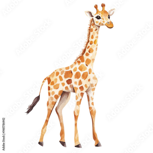 © premium content, Fototapeta premium Giraffe watercolor art on transparent background