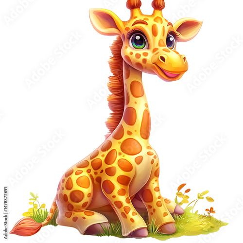 © Pedro, Fototapeta premium Giraffe With Long Neck And Friendly Expression Isolated On White Or Transparent Png
