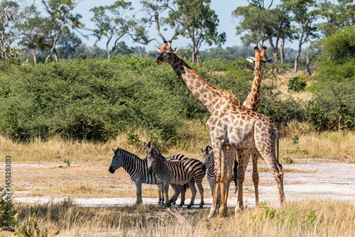 © Miguel, Fototapeta premium giraffes and other wildlife at moremi national park in Botswana
