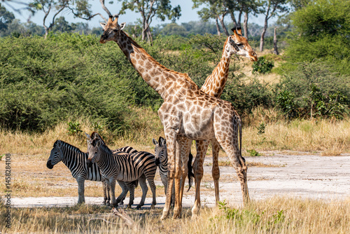 © Miguel, Fototapeta premium giraffes and other wildlife at moremi national park in Botswana