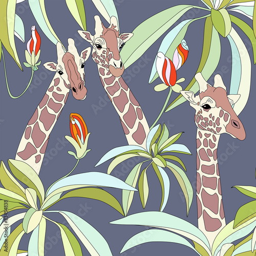 Obraz premium Giraffes in the rainforest,, seamless wallpaper