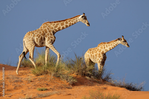 Obraz premium Giraffes on sand dune, Kalahari desert, South Africa