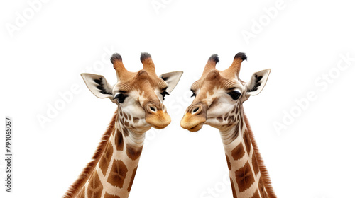© drizzlingstarsstudio, Fototapeta premium giraffes solitary against a stark white background