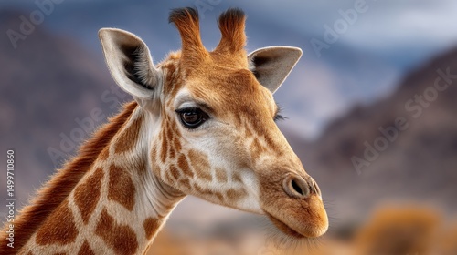 Naklejka premium Giraffes thoughtful gaze against natures canvas