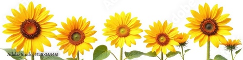 © Prasert, Fototapeta premium Girasolas aisladas en diferentes tama?os y colores sobre un fondo blanco con una textura suave, patrones, girasoles, colores