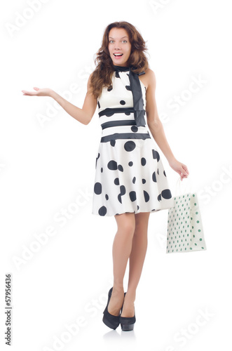 Fototapeta premium Girl after good shopping on white