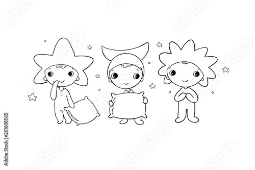 Obraz premium Girl and cats. Good night. Sweet dreams.