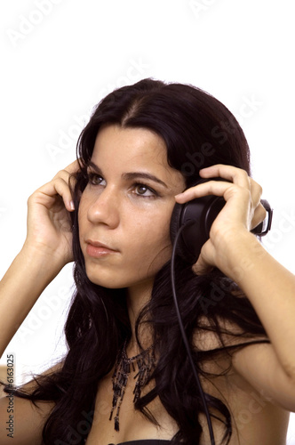 Obraz premium Girl and music - young girl with headphones - isolated