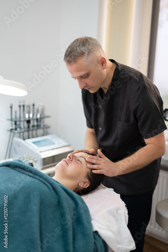 © Tsyb Oleh, Obraz premium girl at a cosmetologist during treatment procedures