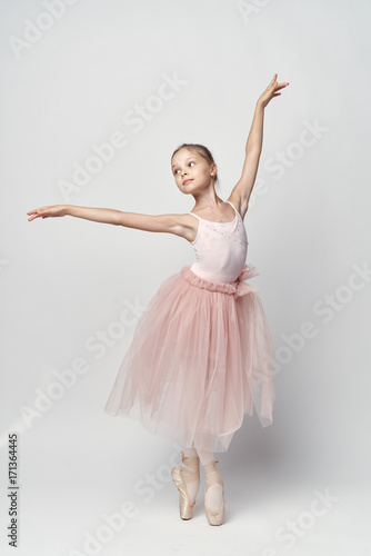 Naklejka premium 1456844 girl ballerina in a pink tutu dancing against a white background