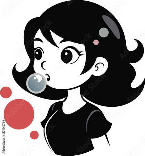 © MstFatema, Naklejka premium Girl Blowing Bubbles Black Vector Wholesome Moment