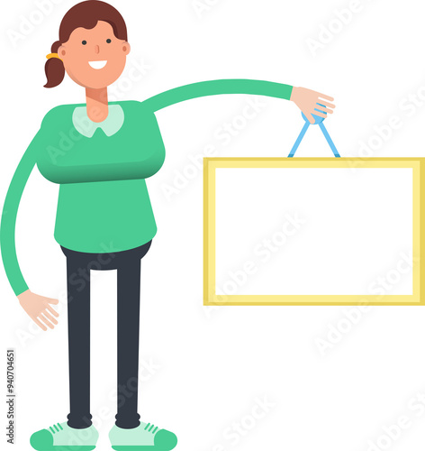 Obraz premium Girl Character Holding Blank Signage