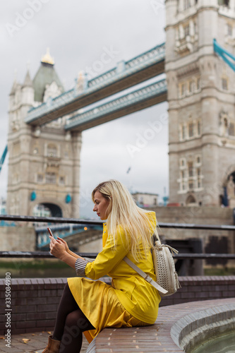 © Myroslava, Fototapeta premium girl charting on the phone at the london bridge