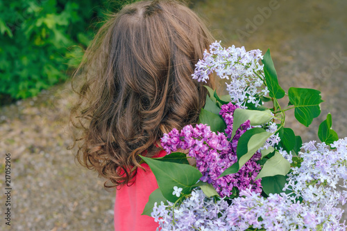 © NATALYA, Fototapeta premium girl child holding a bouquet of lilac.