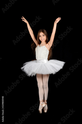 © danilobiancalana, Naklejka premium girl dancing with white tutu on black background