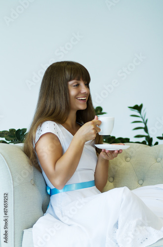 © lokisurina, Obraz premium girl drinks tea, coffee