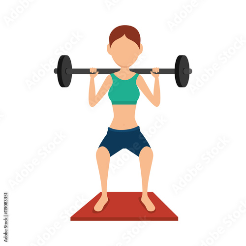 Fototapeta premium girl exercising and lifting weight training healthy fitness activity vector illustration