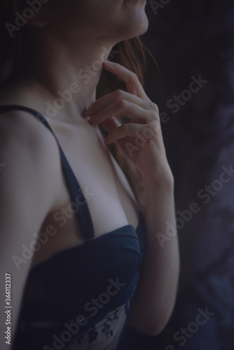 Obraz premium girl gestures and hand movements near the face