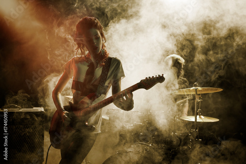 © Voloshyn Roman, Obraz premium Girl-guitar player plays solo.