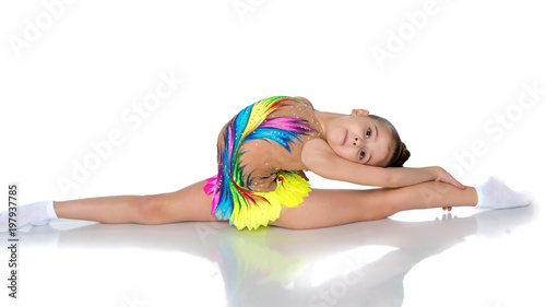 © lotosfoto, Obraz premium Girl gymnast perform the twine exercise.
