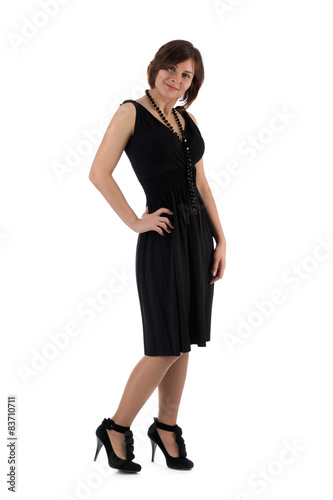 © Ruslan Kudrin, Fototapeta premium girl in a black dress on a white background