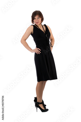 Fototapeta premium girl in a black dress with beads