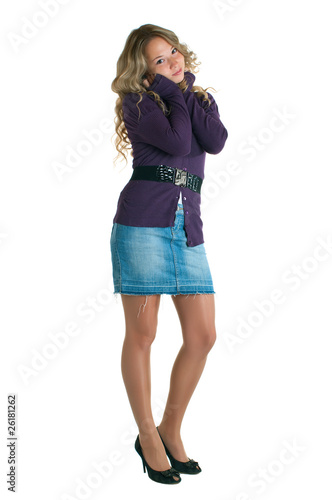 Fototapeta premium girl in a lilac shirt and jeans skirt