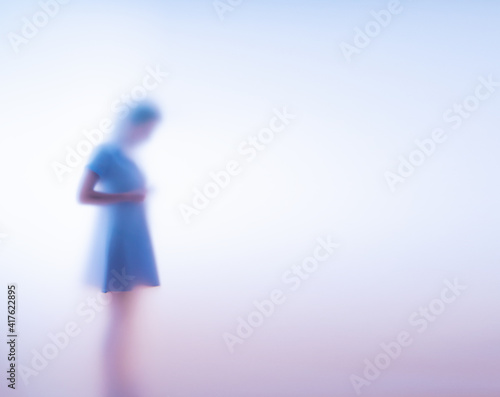 © luchschenF, Obraz premium Girl in a short dress behind frosted glass