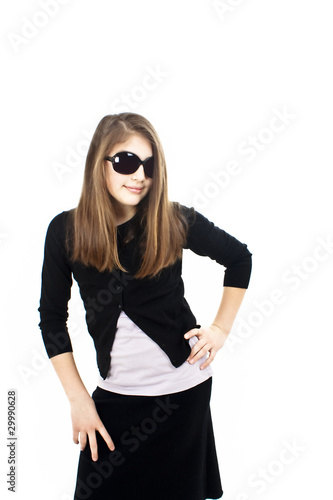 © Jelena Ivanovic, Fototapeta premium Girl in sunglasses posing on white background
