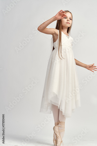 Naklejka premium 1462257 girl in white dress standing on pointes