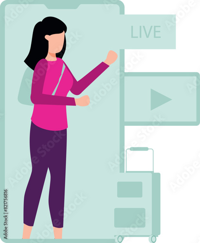 © Flaticons, Fototapeta premium Girl is live on mobile..