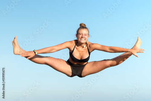 © Luis Louro, Fototapeta premium Girl jumping in the beach