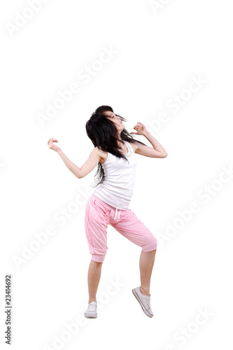 © zhu difeng, Obraz premium Girl jumping isolated on white background .
