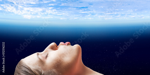 © Sergey Nivens, Fototapeta premium Girl kissing Earth planet . Mixed media