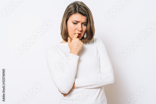 Fototapeta premium Girl nausea finger in mouth