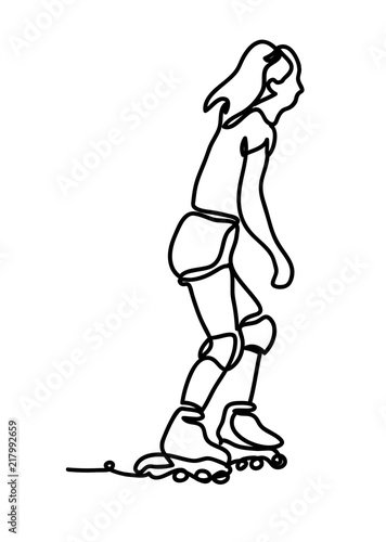 © AyhaanA, Fototapeta premium Girl on rollers. Continuous line drawing. Isolated on the white background. Vector monochrome, drawing by lines