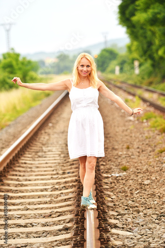© muro, Naklejka premium girl on the railway
