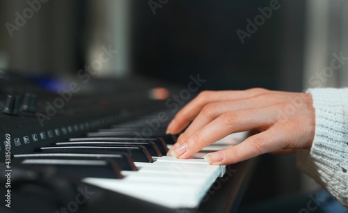© M-Production, Fototapeta premium Girl playing piano. Close-up view.