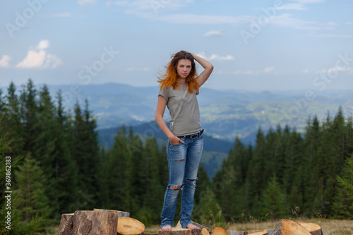 © Farik, Fototapeta premium girl posing and gesturing in the mountains