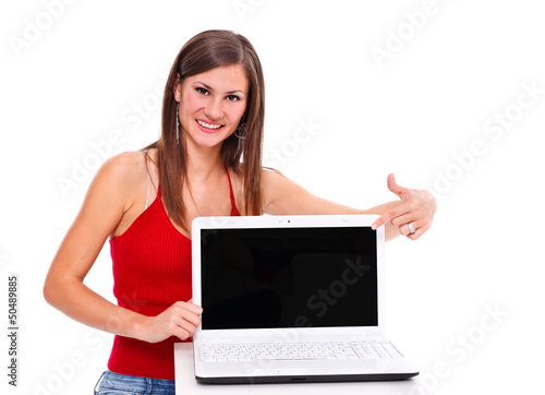 © Szekeres Szabolcs, Naklejka premium Girl posing with laptop